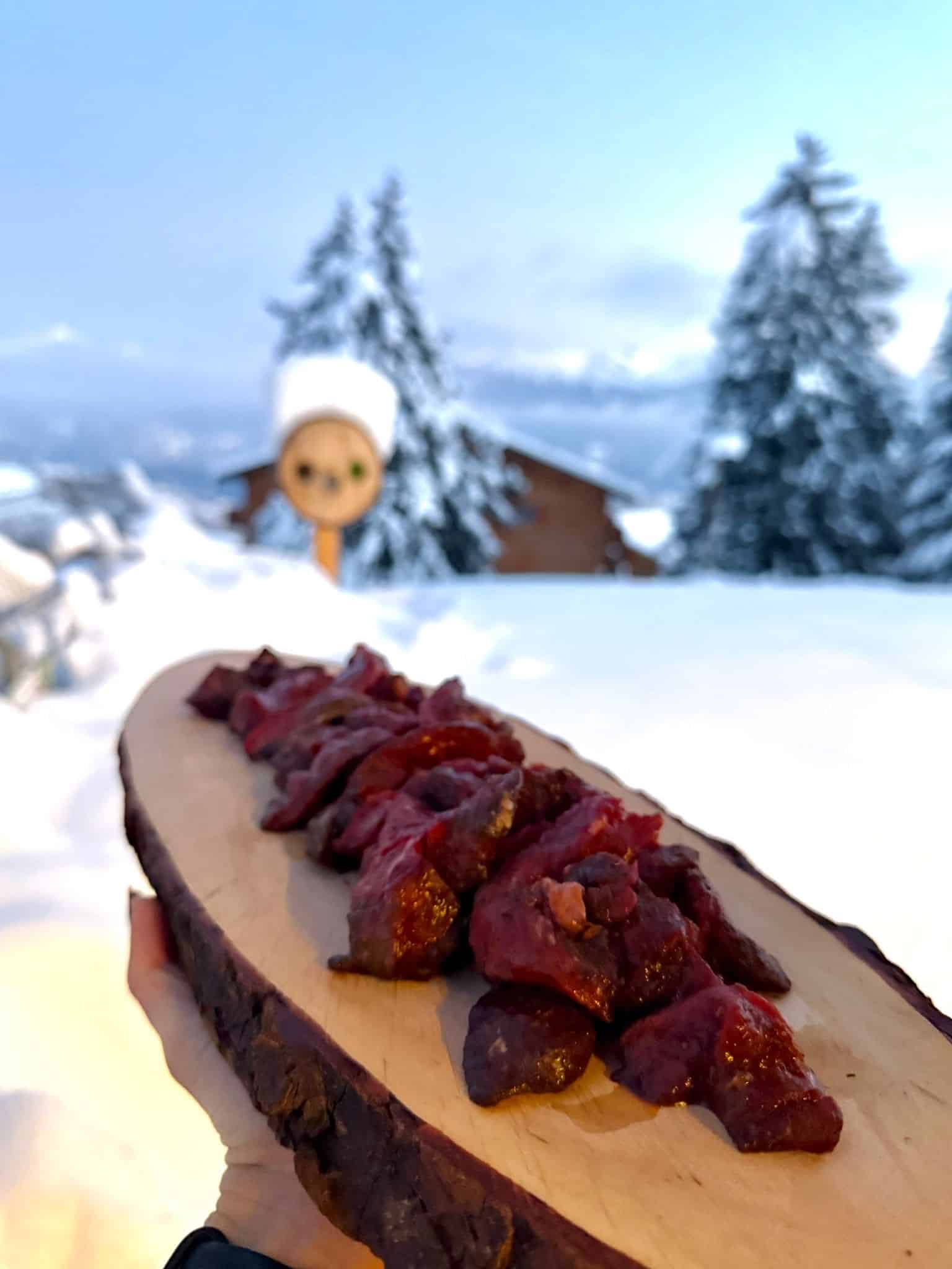 Cette viande de boeuf marinée aux herbes de nos montagnes par nos soins fera l’unanimité auprès de vos convives.